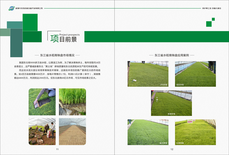 而這些水田大部分采用旱育秧技術(shù)育秧,這就給本項(xiàng)目的推廣提供巨大的市場(chǎng)前景。如1百萬(wàn)畝就需要4000萬(wàn)片,按每片零售價(jià)1.7元、利潤(rùn)0.5元計(jì)算(保守),其銷售額達(dá)6800萬(wàn)元,利潤(rùn)則達(dá)2000萬(wàn)元。僅東北就有60億元市場(chǎng),可見(jiàn)市場(chǎng)前景之巨大。